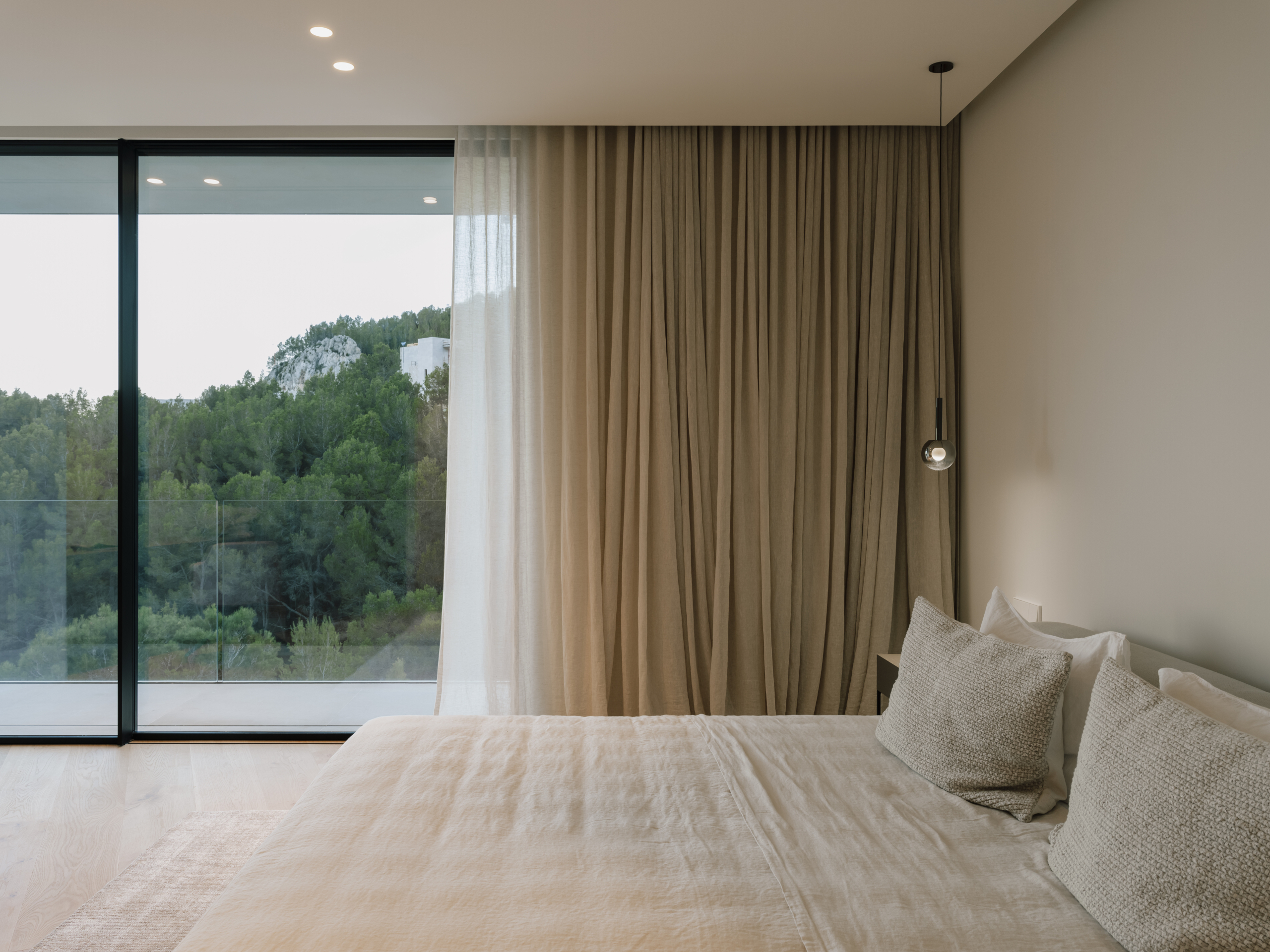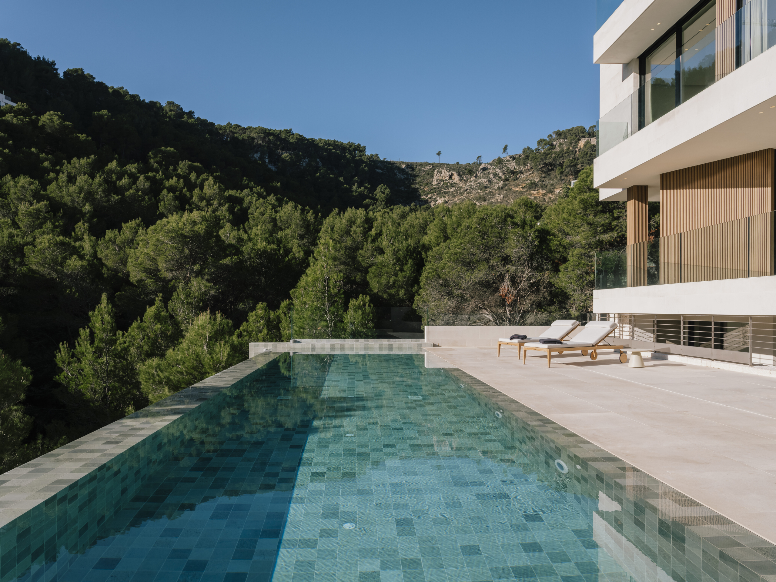 This exclusive Villa in Son Vida, Mallorca boasts a gourmet Mobalco kitchen, climate-controlled wine cellar, and a versatile multi-purpose room, perfect for a cinema room. Each of the four main bedrooms features an ensuite bathroom, with the master suite enjoying breathtaking views. High-quality finishes include natural stone flooring throughout the main areas and oak wood parquet in the bedrooms. Modern conveniences such as underfloor heating, a KONE lift, and a comprehensive security system enhance the living experience.