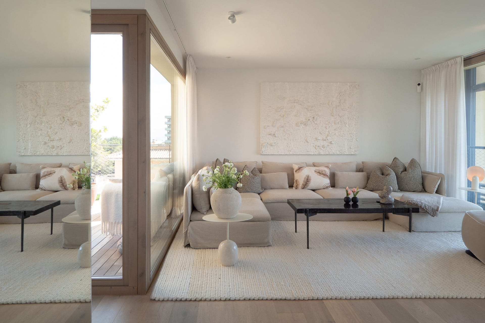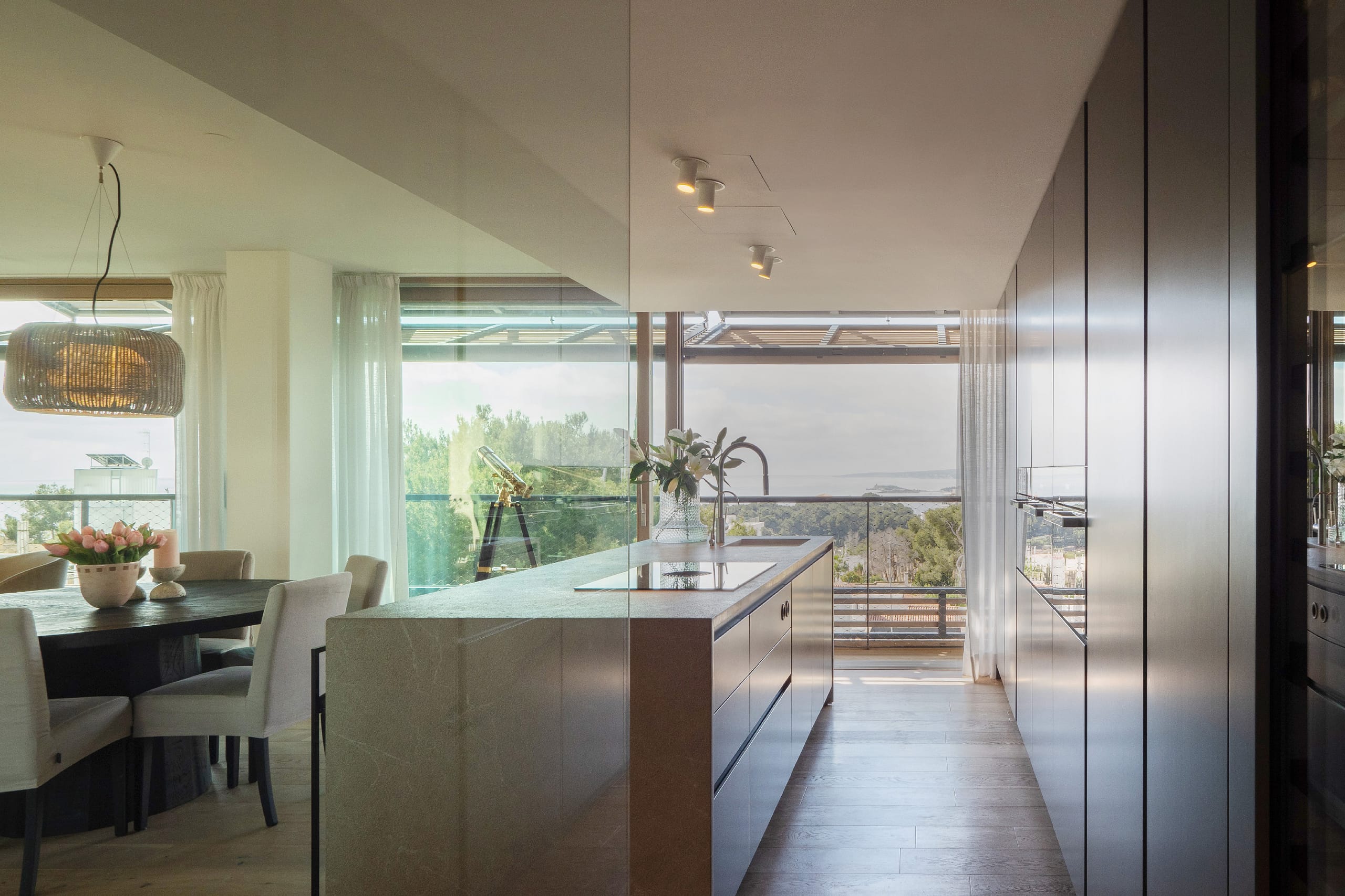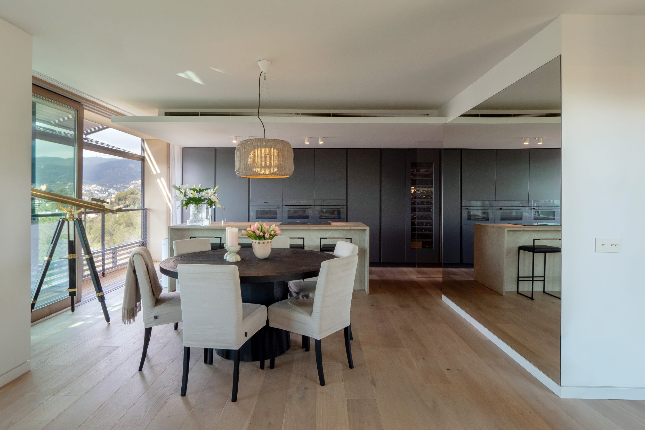 The penthouse in La Bonanova, Palma features 5 spacious bedrooms and 5 stylish bathrooms, ideal for both comfortable family living and hosting guests. The interiors are complement by a fully fitt Cocinart designer kitchen, equipped with premium appliances and enhanced by an advanced osmosis water filtration system.