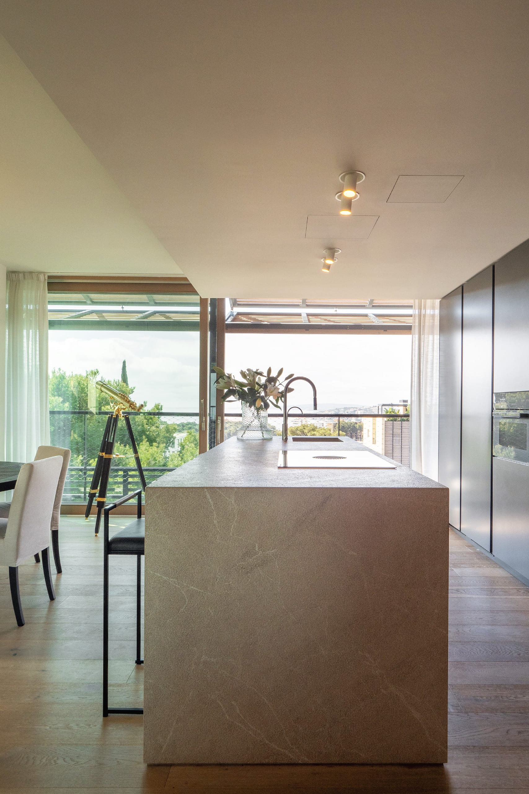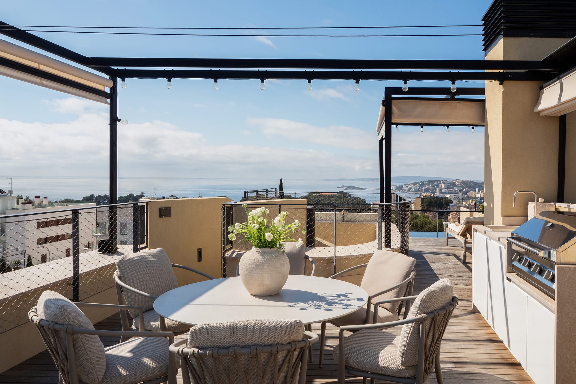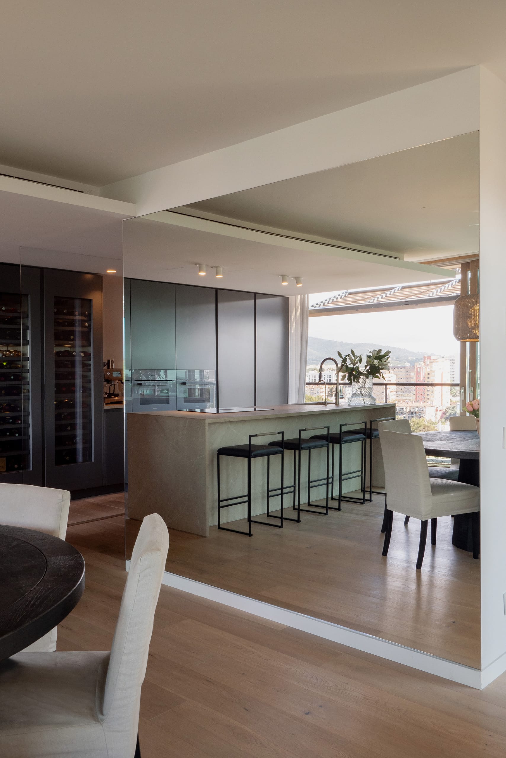 The penthouse in La Bonanova, Palma features 5 spacious bedrooms and 5 stylish bathrooms, ideal for both comfortable family living and hosting guests. The interiors are complement by a fully fitt Cocinart designer kitchen, equipped with premium appliances and enhanced by an advanced osmosis water filtration system.