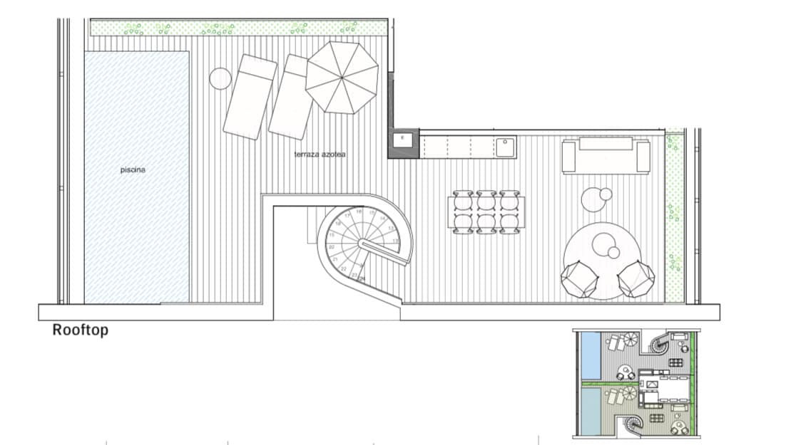 A standout feature of this residence is the spectacular 110 m² private rooftop terrace, complete with a private swimming pool measuring 6.80 x 2.60 meters. This exclusive outdoor space is perfect for relaxing or entertaining while enjoying breathtaking panoramic views of both the sea and the surrounding mountains.