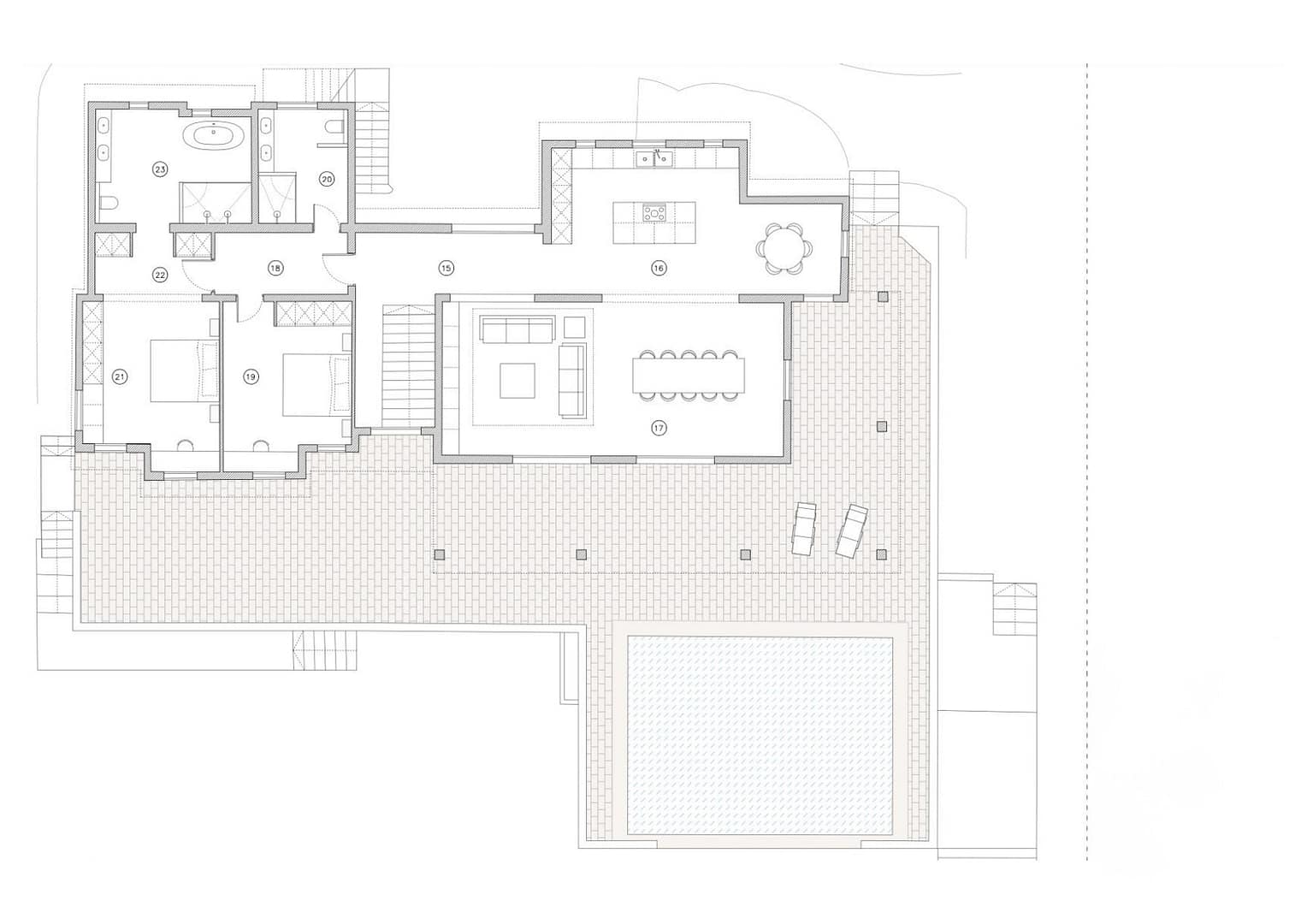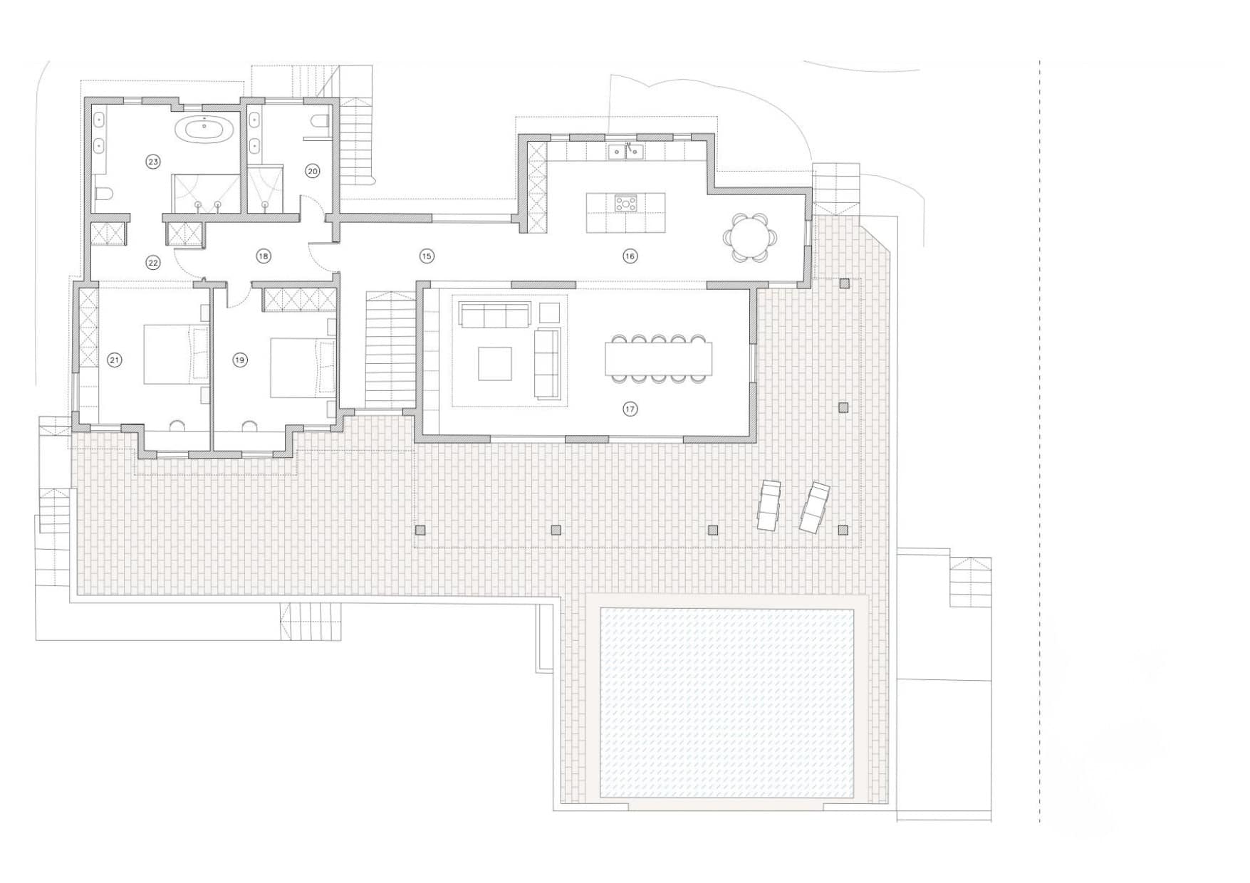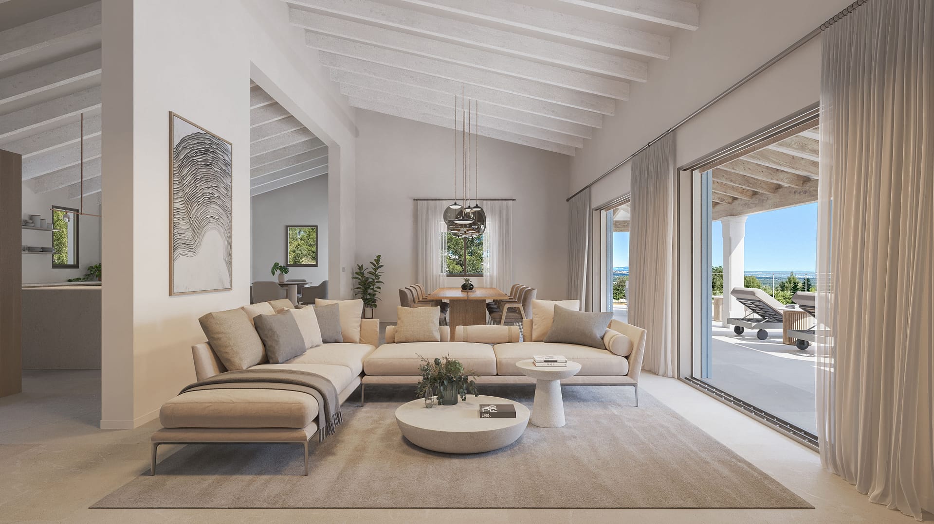 This beautiful villa offers an exceptional living experience within the exclusive Sa Coma Villas Park, perched 180 meters above sea level. This south-west facing property is bathed in sunlight throughout the day, offering breathtaking panoramic views of Palma Bay and spectacular sunsets. Its prime location provides convenient access to amenities, with the Son Termens golf course just a 5-minute drive away, and Palma's city center and airport reachable within 15 minutes. The charming town of Sóller, with its picturesque fishing port and beaches, is a mere 10-minute drive.