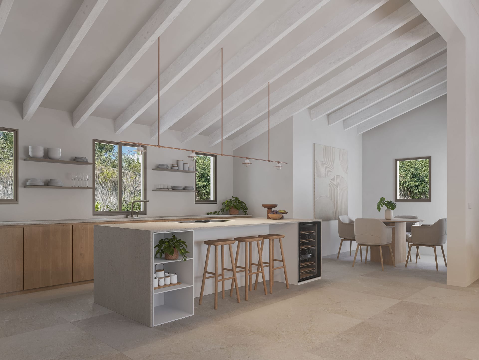 Adding to its unique appeal, residents of this spectacular Villa in Bunyola, Mallorca can easily access Sóller via the historic wooden train, ‘Ferrocarril de Sóller’, from the nearby Sa Coma railway stop. Sa Coma Villas Park itself is a tranquil residential area boasting excellent infrastructure, including eco-friendly waste recycling, CCTV surveillance, public transport links, municipal services, and high-speed internet.