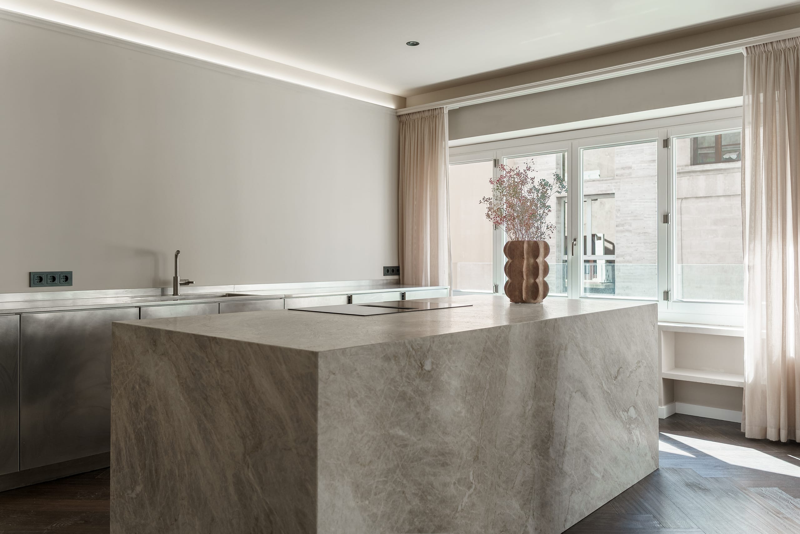 Exclusive newly renovated four bedroom apartment of 258 m2, with terrace, in a prime location of Palma very close to the cathedral. This spacious home located on the third floor on an affluent street just behind the well-known Paseo del Borne offers open spaces and large social areas. Everything in this meticulously designed home has been completely refurbished and the property offers a total of four bedrooms, four bathrooms, open plan kitchen, a grand dining space and a living room with a fireplace and access to the terrace facing west.