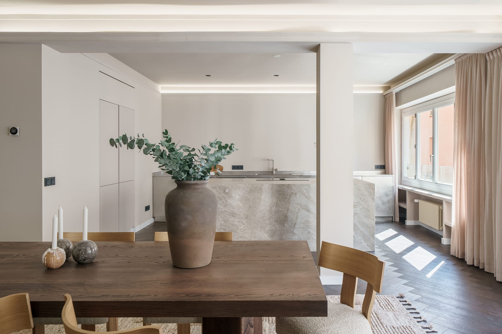 The area connects the charm of the Old Town to the sophistication of Paseo del Borne. The location is only a step away from all that Palma has to offer. Neighbor to the Cathedral it’s lined with eclectic shops and cafes as well as famous restaurants and historic buildings. This fabulous four bedroom Apartment in Palma has been designed to offer a perfect blend of classical charm and modern convenience.