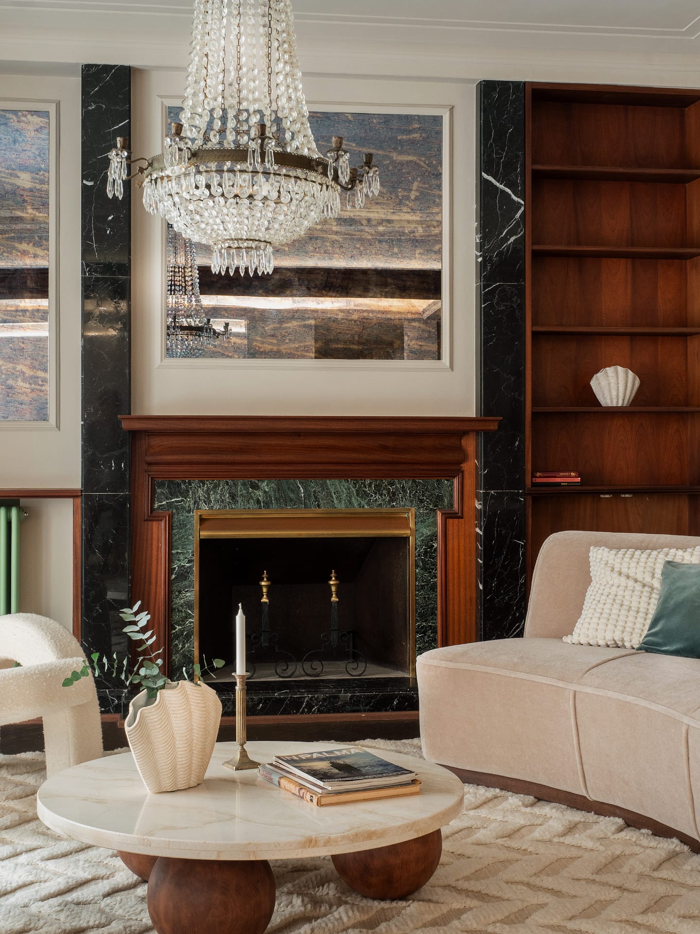 The residence has wooden floors, a beautiful Häcker kitchen with marble stone details, a living space with a built-in library and adorned with a fireplace. This property is equipped with an elevator and is sold with a parking space.