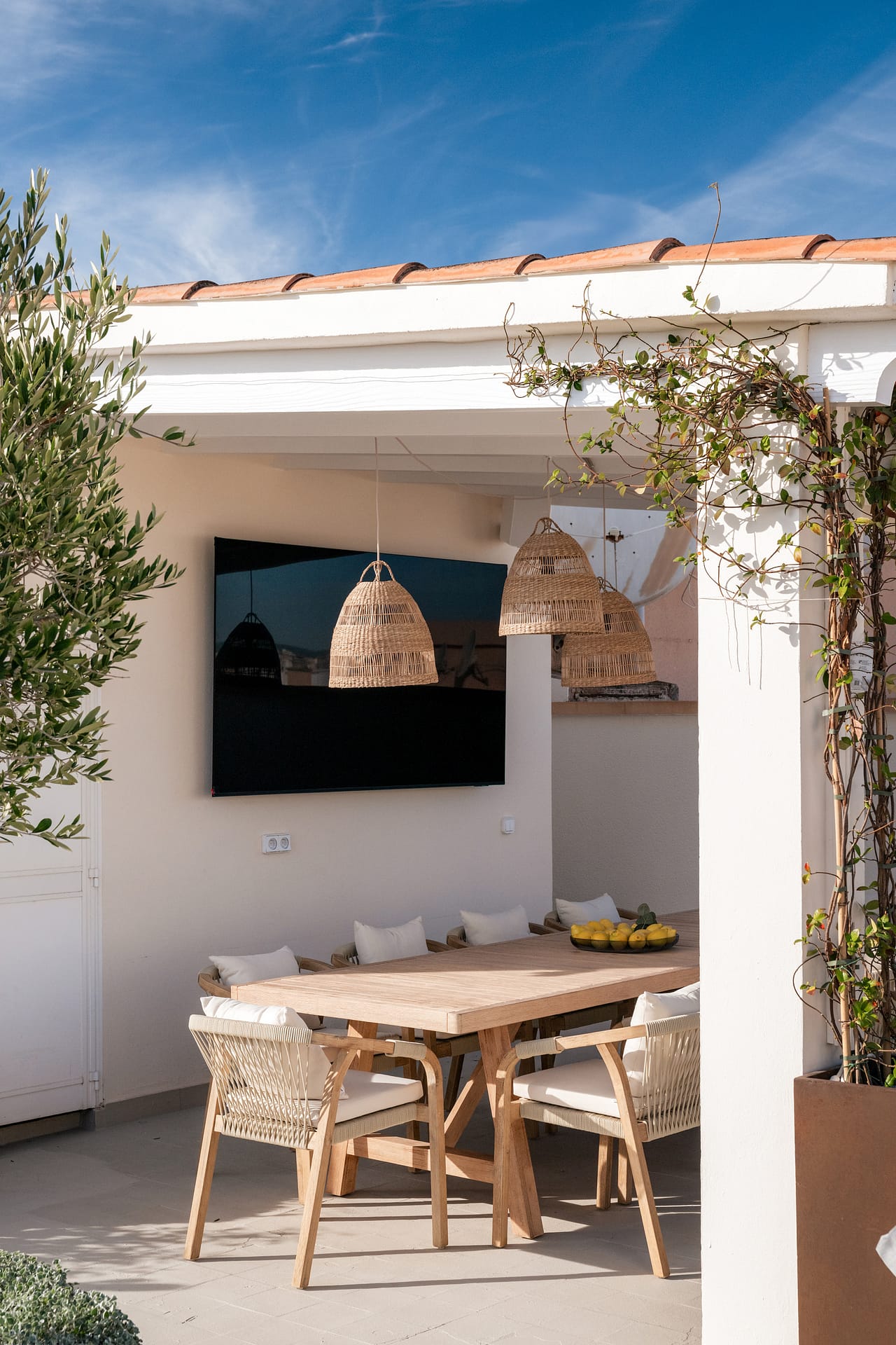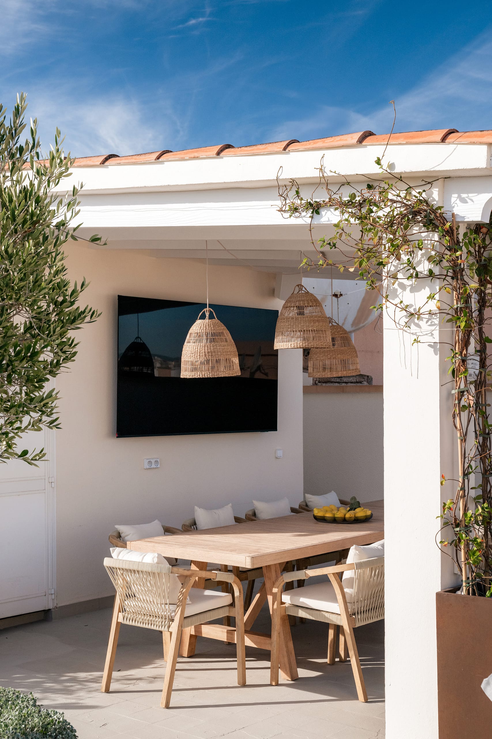 Above, the private 102 m² rooftop terrace serves as an exclusive retreat. With panoramic views over the harbor and the yachts below, it is ideal for sunset dining, relaxing in the Mediterranean sun, or hosting guests in complete privacy.