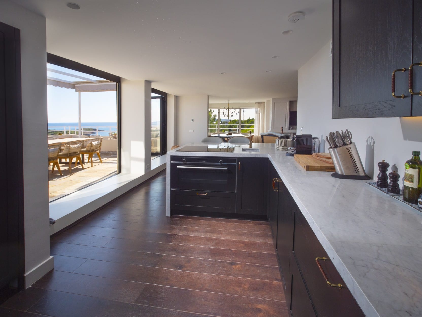 Furthermore, the apartment has a spacious master bedroom with a private terrace, two en-suite bathrooms and a walk-in dressing room. There are two double bedrooms with en-suite bathrooms and one has kitchenette facilities. Some features include air conditioning h/c, 2 parking spaces, wood & tile flooring, 2 storage rooms, high quality carpentry and fitted wardrobes.
