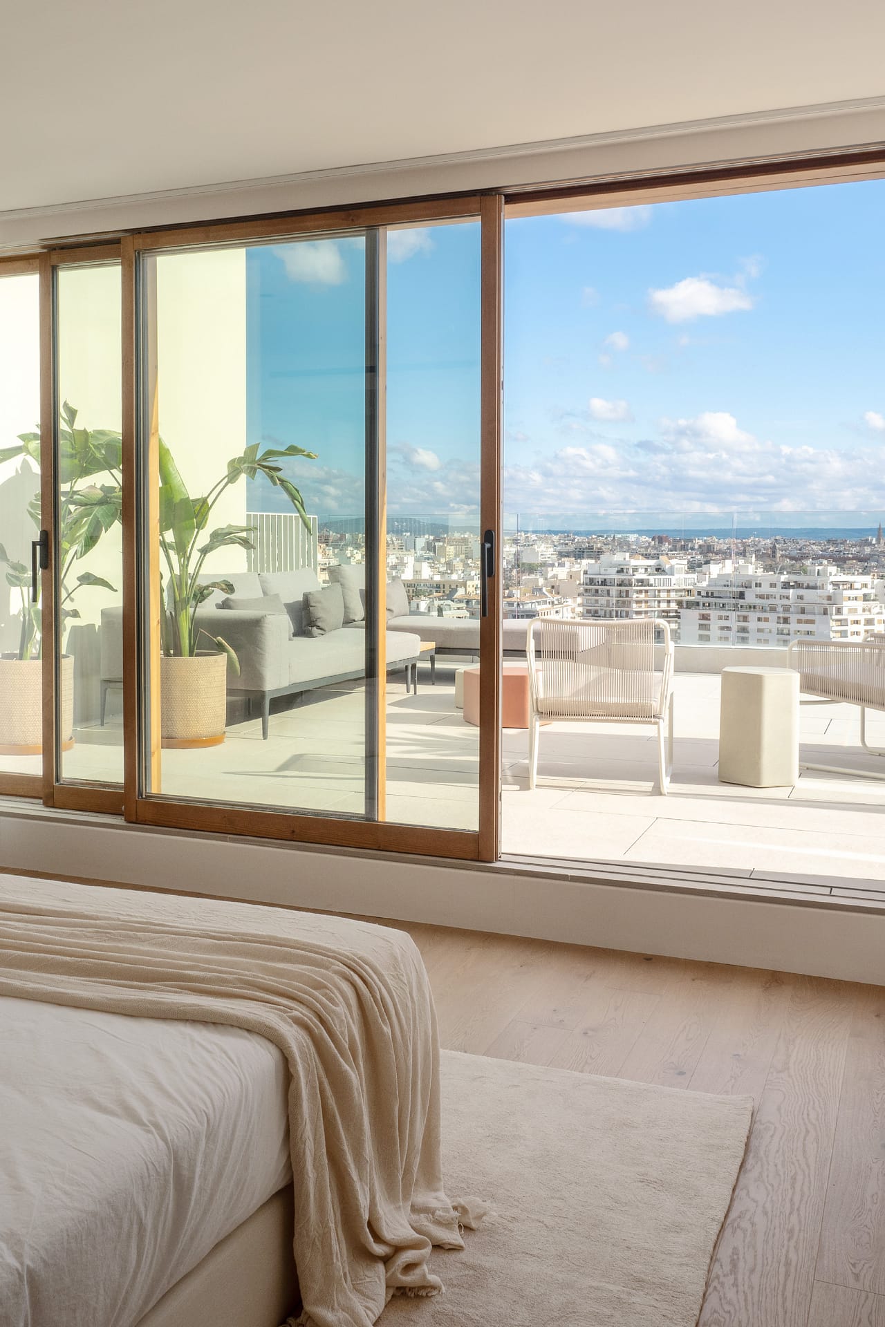 The crowning jewel is the expansive rooftop terrace—an exceptional outdoor haven complete with an outdoor shower, pre-installation for a barbecue, and space for a summer kitchen. Whether relaxing in privacy or entertaining guests, this sun-drenched terrace offers an unparalleled setting with Palma’s skyline as your backdrop.