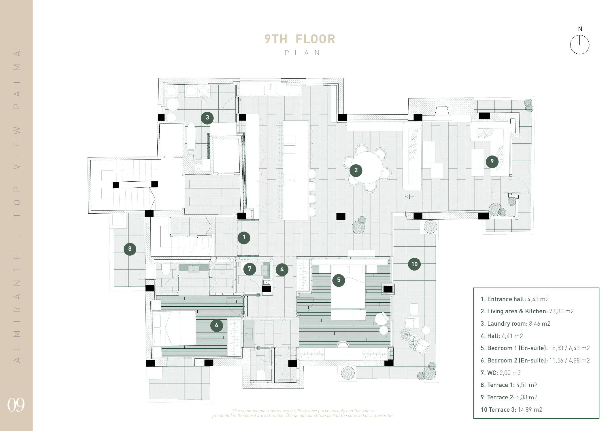 Additional amenities include a guest WC, two private garage parking spaces, and two storage rooms, offering both practicality and convenience. This exceptional penthouse combines refined luxury, remarkable views, and modern living—an outstanding opportunity to own a truly distinctive home in one of Palma’s most sought-after neighbourhoods.