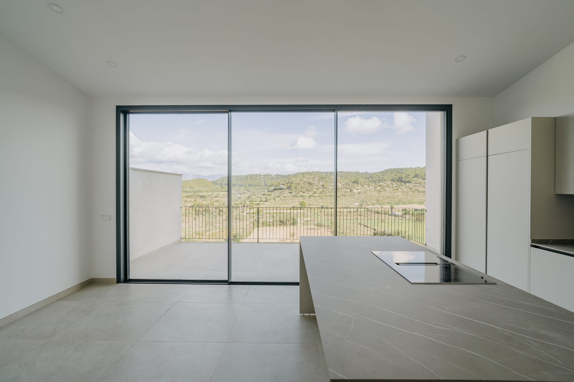 Designed for modern comfort, the home features Formentor Beige porcelain tiles throughout the interior and exterior spaces. The open-plan living area combines the kitchen, dining, and lounge, enhanced by large windows that provide abundant natural light and direct access to the terrace.