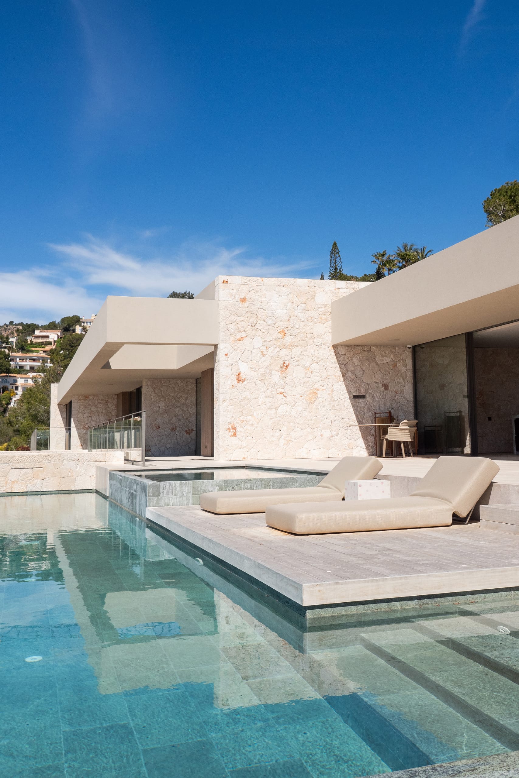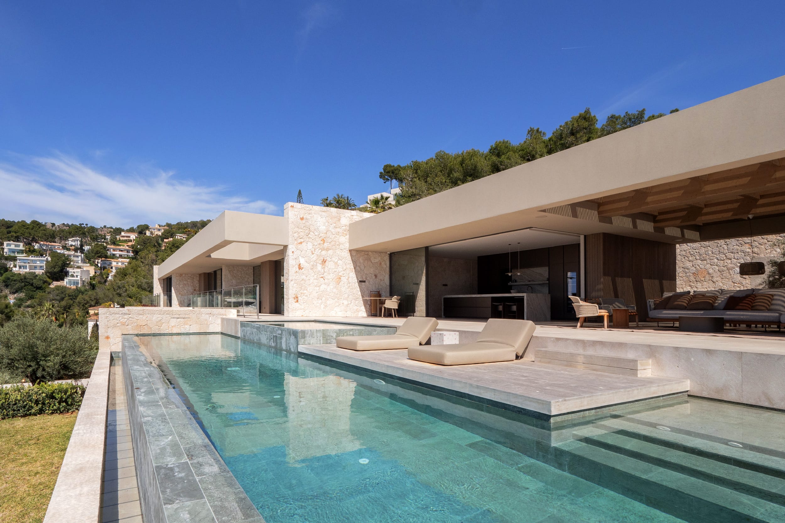 Positioned above Portals Nous in the exclusive area of Costa d’en Blanes, this villa occupies a 2,500 m² elevated plot with wide views over the Palmanova bay. It combines privacy with close access to the marina, restaurants, and boutiques nearby. The architecture is modern and defined, softened by natural materials and a clear Mediterranean influence, creating a balanced and refined home in southwest Mallorca.