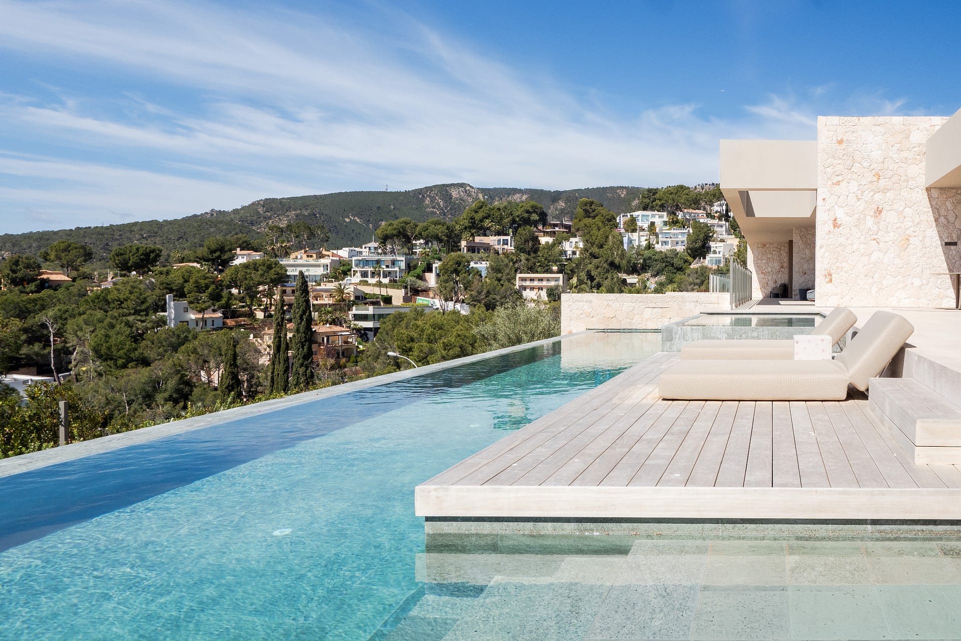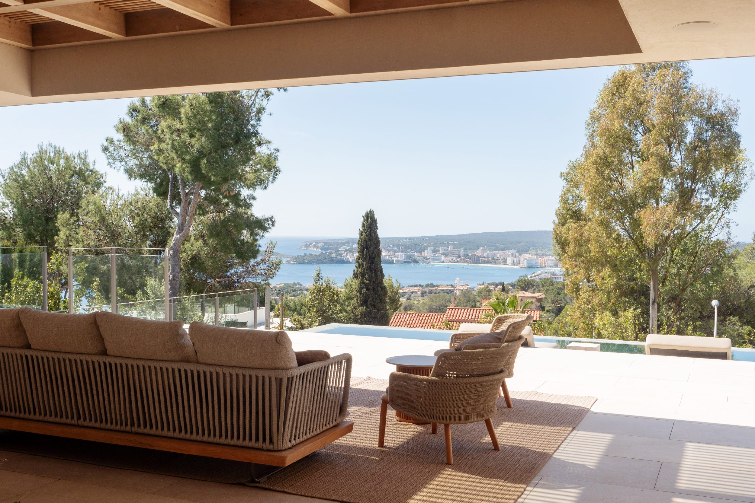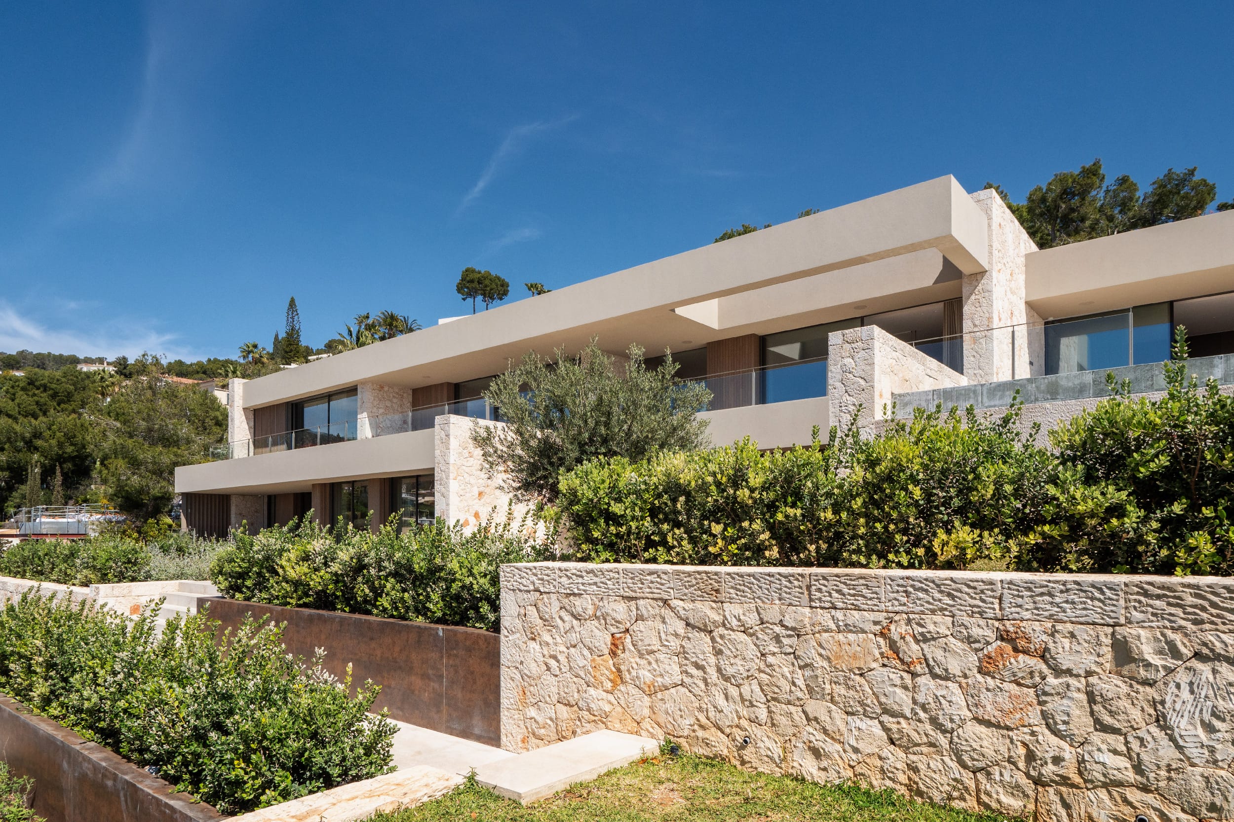 The property is close to Puerto Portals, one of the most established areas in the southwest of Mallorca, around 15 minutes from Palma de Mallorca. The marina is known for its collection of superyachts, as well as its restaurants and boutiques. The immediate area is mainly made up of apartments, while larger villas are set in the surrounding hills. Just across the motorway, Costa d’en Blanes offers a more private residential setting, known for modern villas and elevated sea views.
