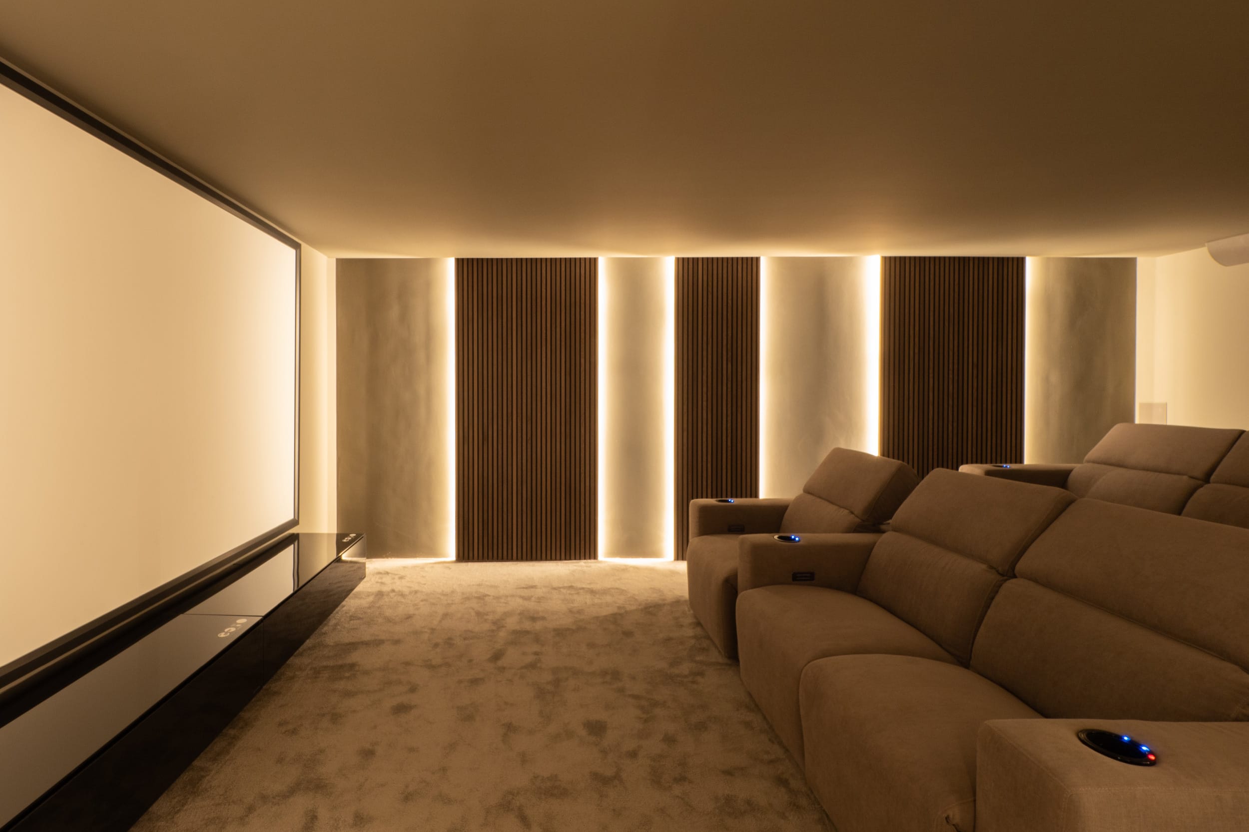 The ground floor is designed for practicality, with a six-car garage, private cinema room, and a separate laundry area.