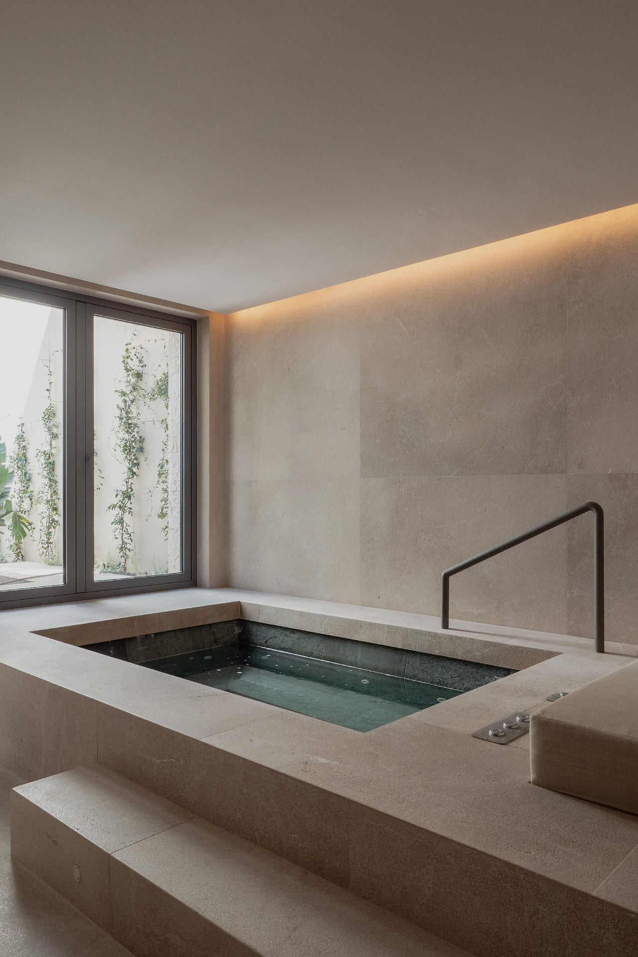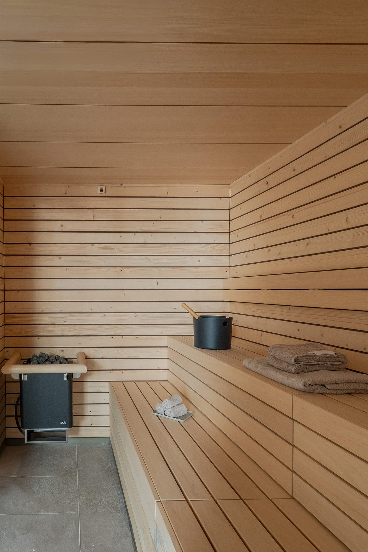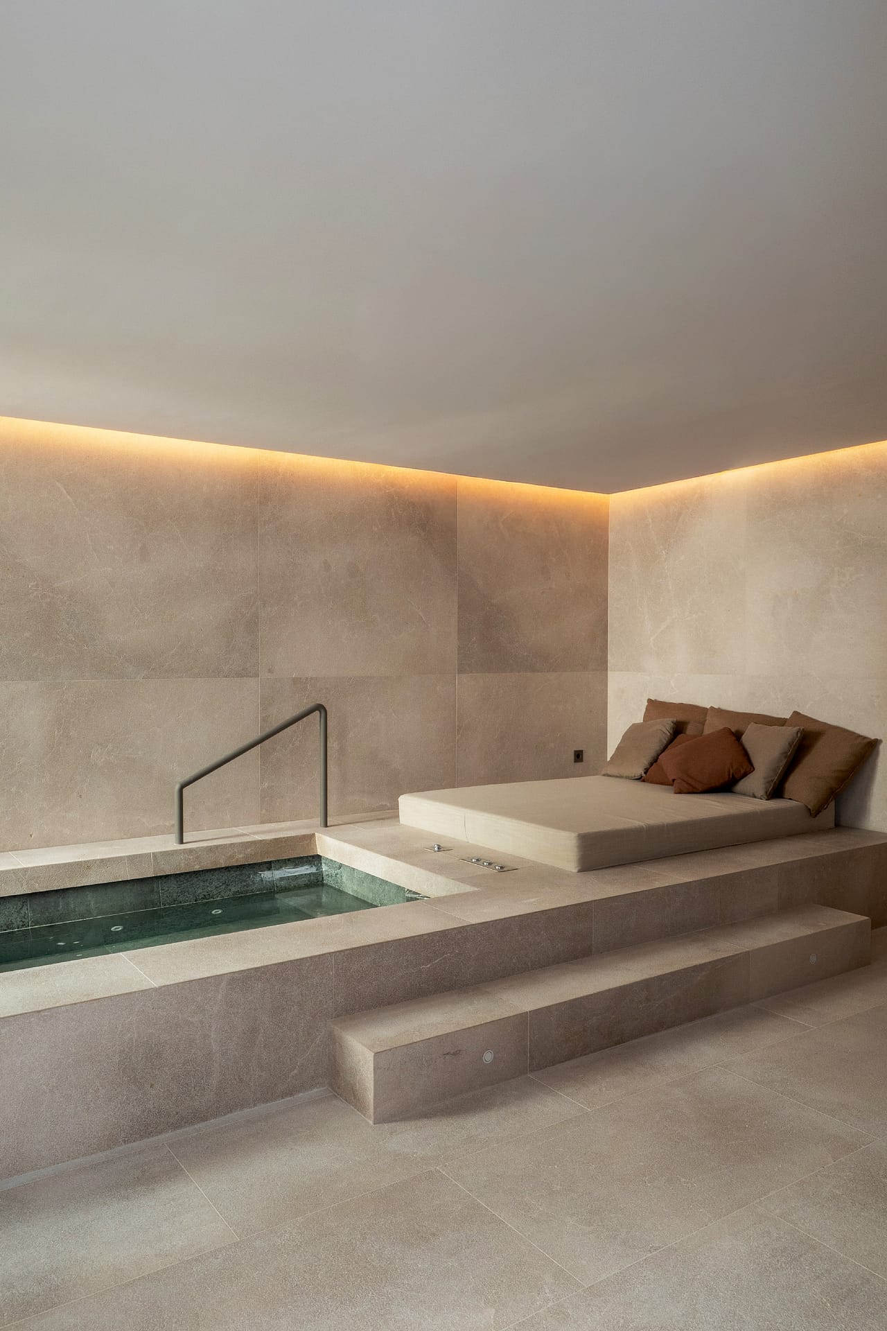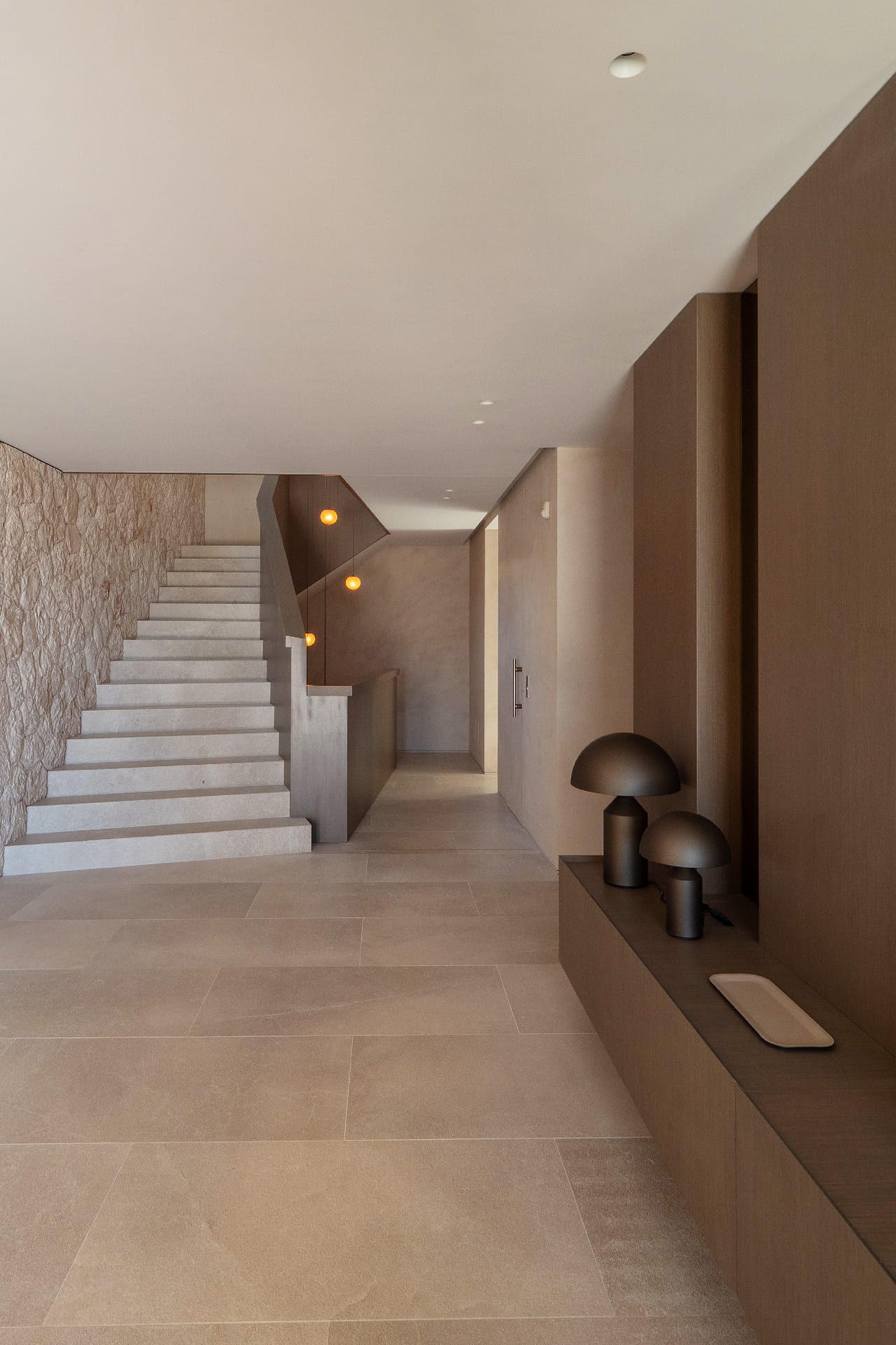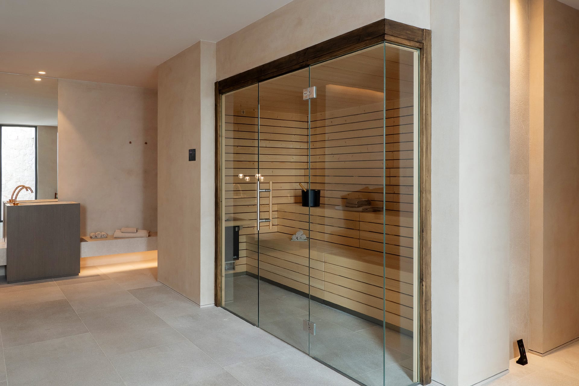 The first floor is arranged around four en suite bedrooms, each offering space and privacy. This level also includes a dedicated wellness area with a fully equipped gym, sauna, Jacuzzi, and bathroom, forming a private spa within the home.