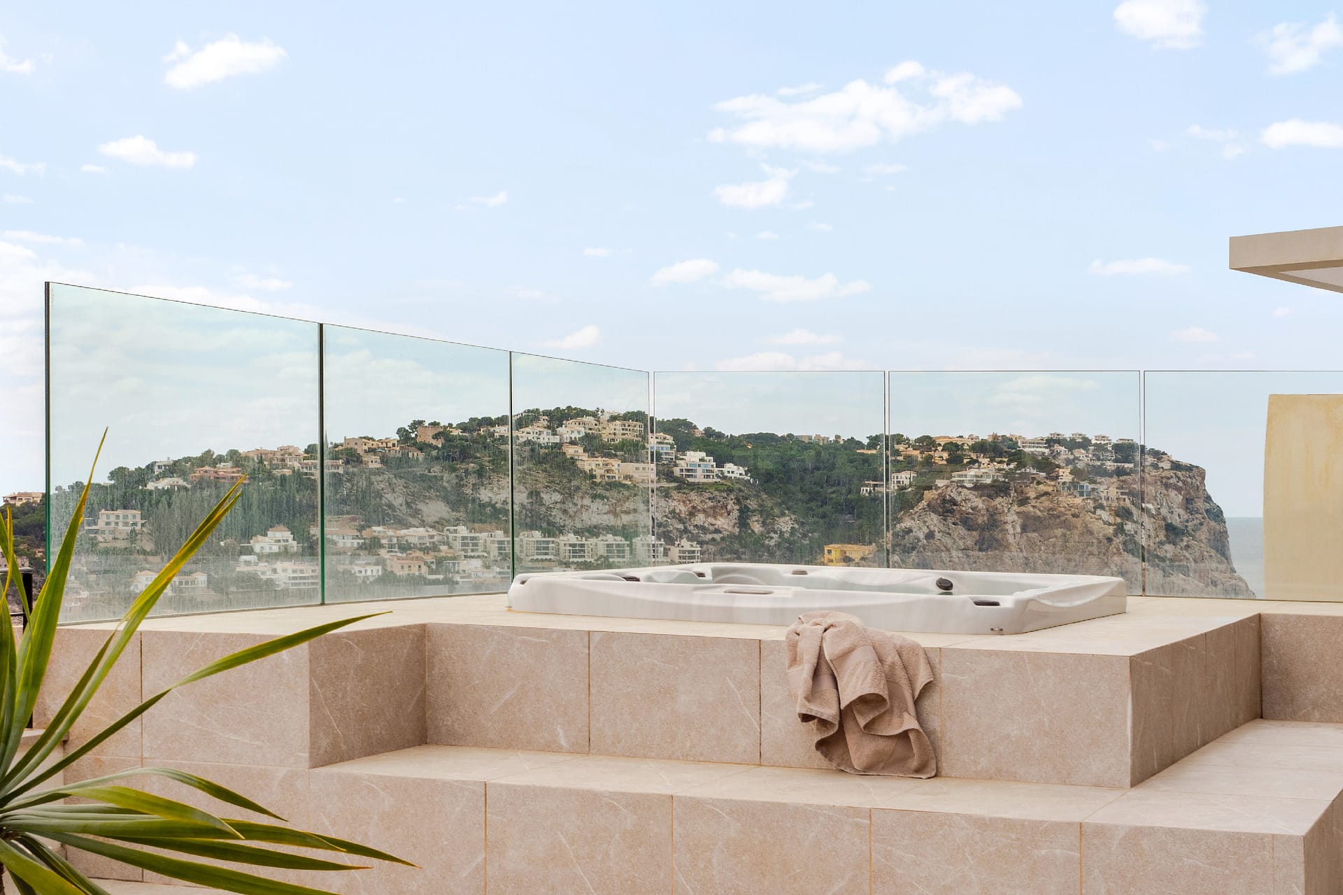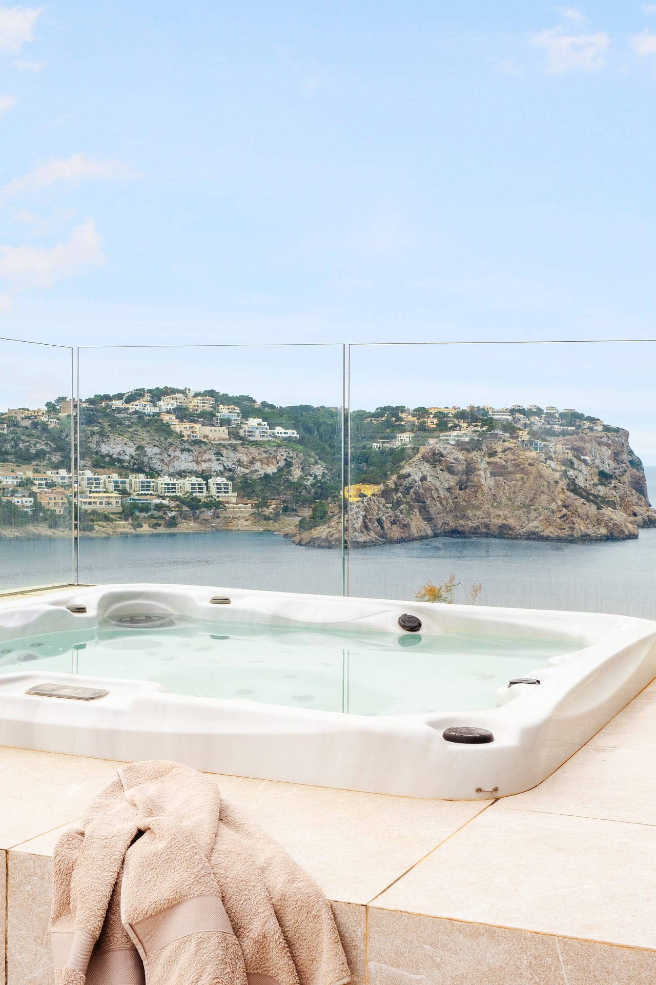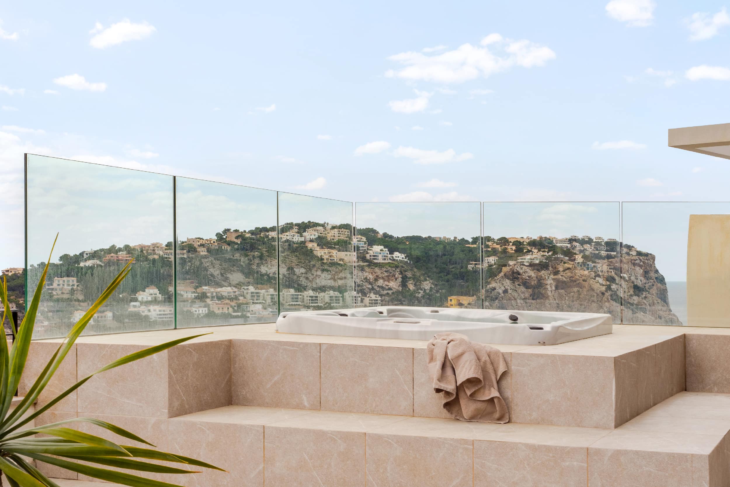 One of the standout features of this property is the enormous rooftop terrace, complete with a sunken jacuzzi. From this elevated vantage point, panoramic views over the harbor and the open sea provide an extraordinary setting for relaxation and entertaining under the stars.