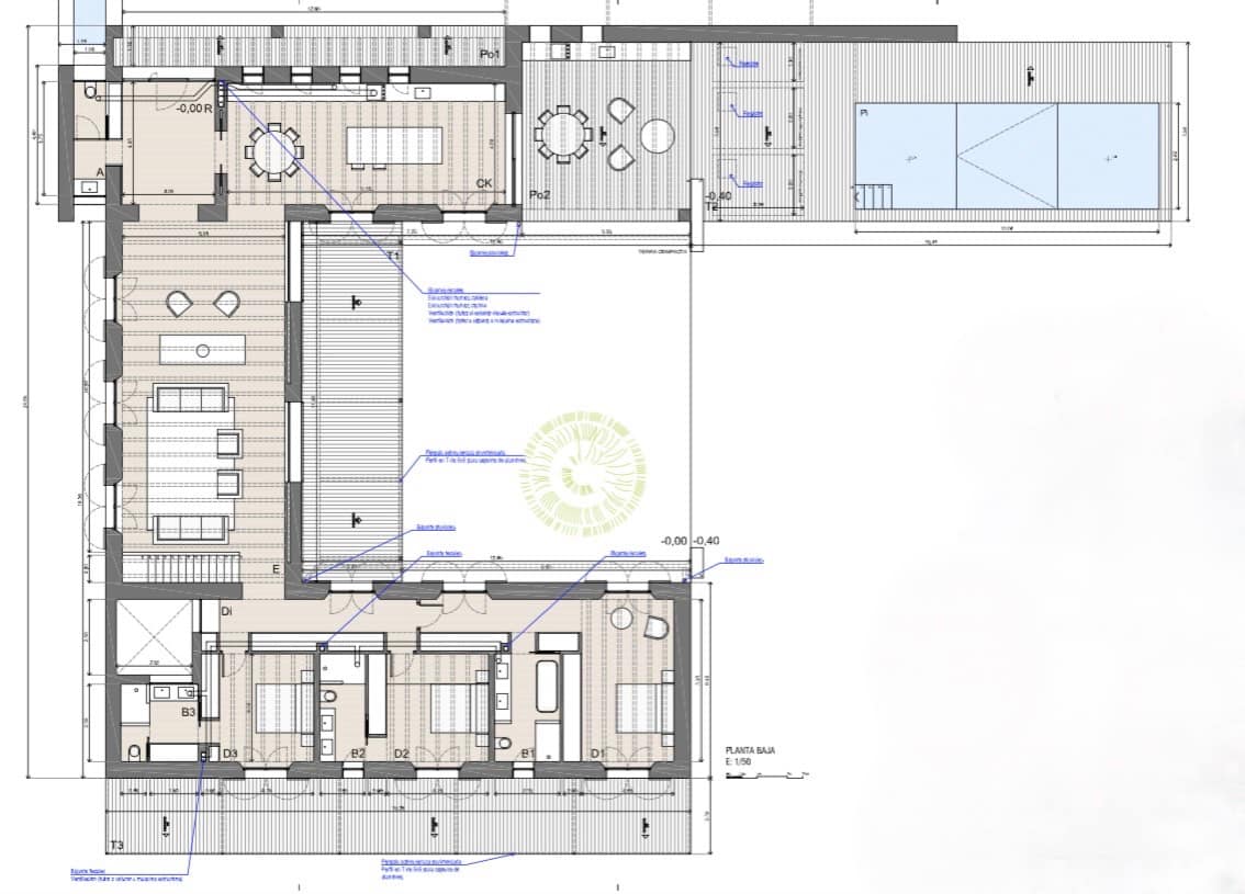 An existing agricultural building of approximately 200 m² is located on the plot and is officially registered as such. In addition, a fully approved project is in place for the construction of a 300 m² finca with an additional 100 m² basement, including a swimming pool. The project has full building licence granted, allowing construction to begin immediately.